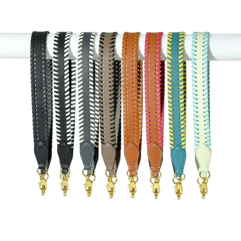 LST554 replacement for Tressage wide logo custom shoulder woven bag straps gold purse leather handbag strap