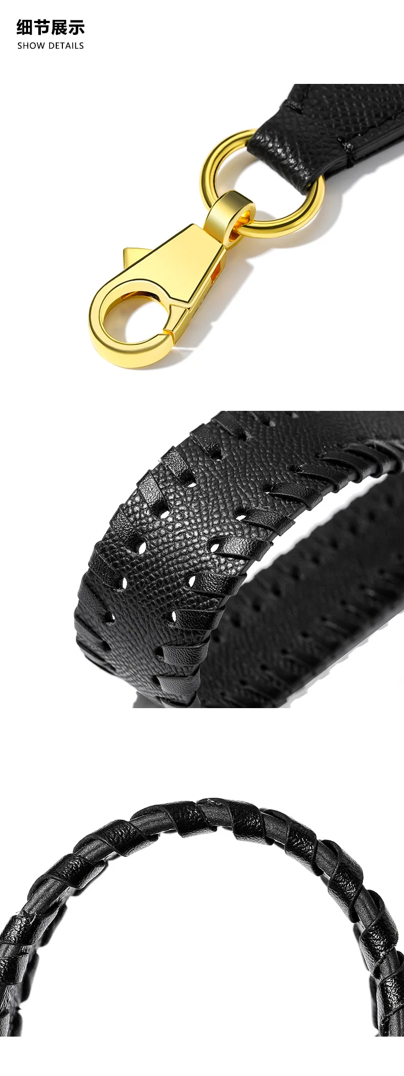 gold buckle:Top Grain Palm Black + Microfiber Black